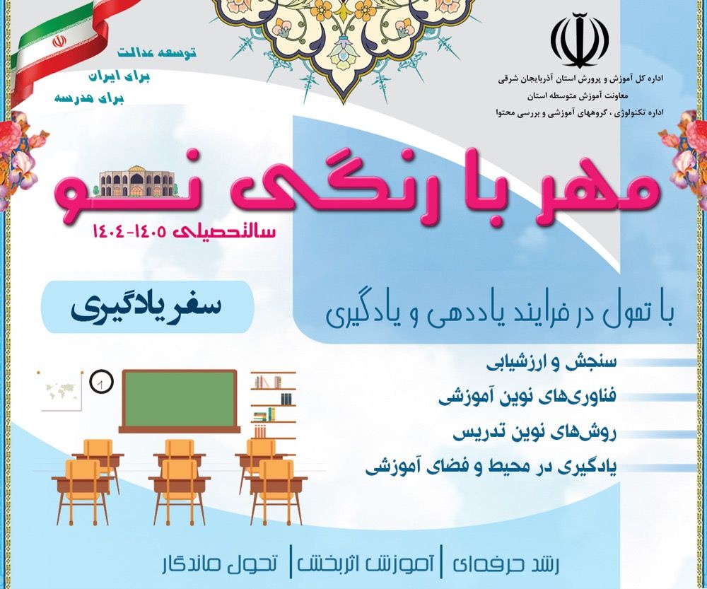 آموزش‌وپرورش استان آذربایجان شرقی امسال با رویکردی نو، بر آن است تا با تکیه بر خلاقیت، ارتقای کیفیت فعالیت‌های آموزشی و همراهی همه همکاران، سالی پربار و اثرگذار را رقم بزند.