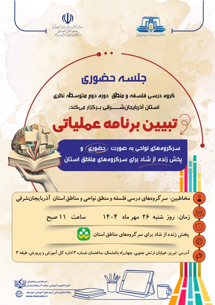 زمان جلسه حضوری تبیین برنامه عملیاتی گروه درسی فلسفه و منطق دوره دوم متوسطه نظری استان آذربایجانشرقی: