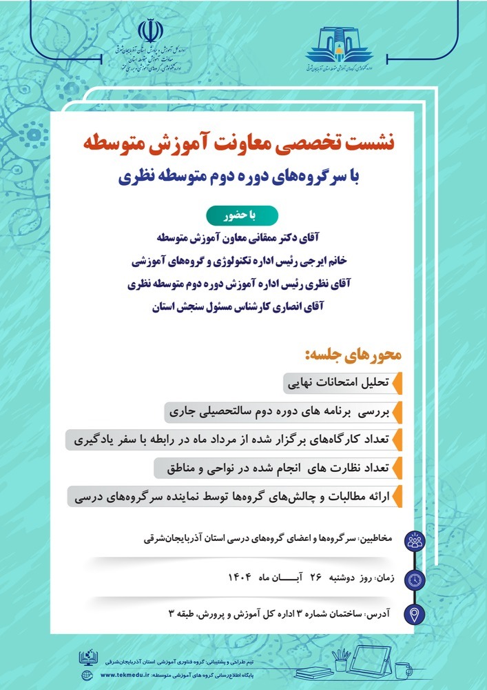 زمان نشست تخصصی معاونت آموزش متوسطه با سرگروههای دوره دوم متوسطه نظری: