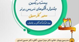 وبینار کشوری”بیست و یکمین جشنواره الگوهای تدریس برتر محور کارسوق ویژه شرکت کنندگان در جشنواره”